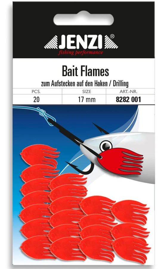 Jenzi Baitflames zijn gemaakt om de attractiviteit van je aasvis te verhogen. Ze zijn eenvoudig over iedere haak te schuiven en daarmee direct klaar voor gebruik. Een verpakking bevat 20 stuks van 17 mm in de kleur rood. Deze Jenzi Baitflames zijn een goede toevoeging aan het arsenaal van iedere doodaasvisser!