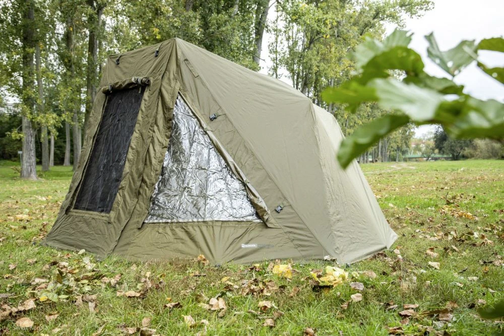 De Radical Insist Bivvy is een extreem stabiele en zeer goed doordachte bivvy. Het frame biedt, door het centrale fixeerpunt van alle stangen, een zeer onopvallend ontwerp. Water loopt zeer goed naar achteren weg en blijft niet op de huid staan. Muggenvensters aan de voor en achterzijde zorgen voor een muggenvrije luchtcirculatie. Aan de voorkant kunnen ook doorzichtige, kunststof vensters gebruikt worden. Deze bivvy wordt geleverd met grondzeil. Het materiaal, van 10.000 HH, houdt ook stand bij de zwaarste regenbuien. Met deze bivvy zijn jouw sessies aan de waterkant van comfort verzekerd!